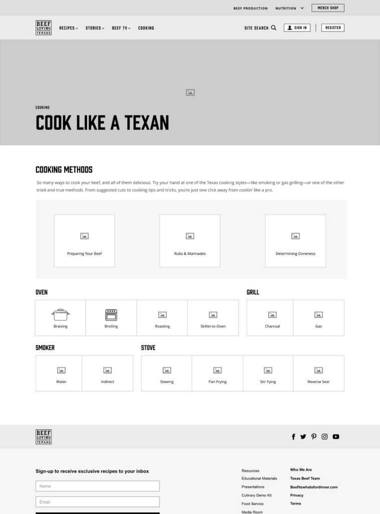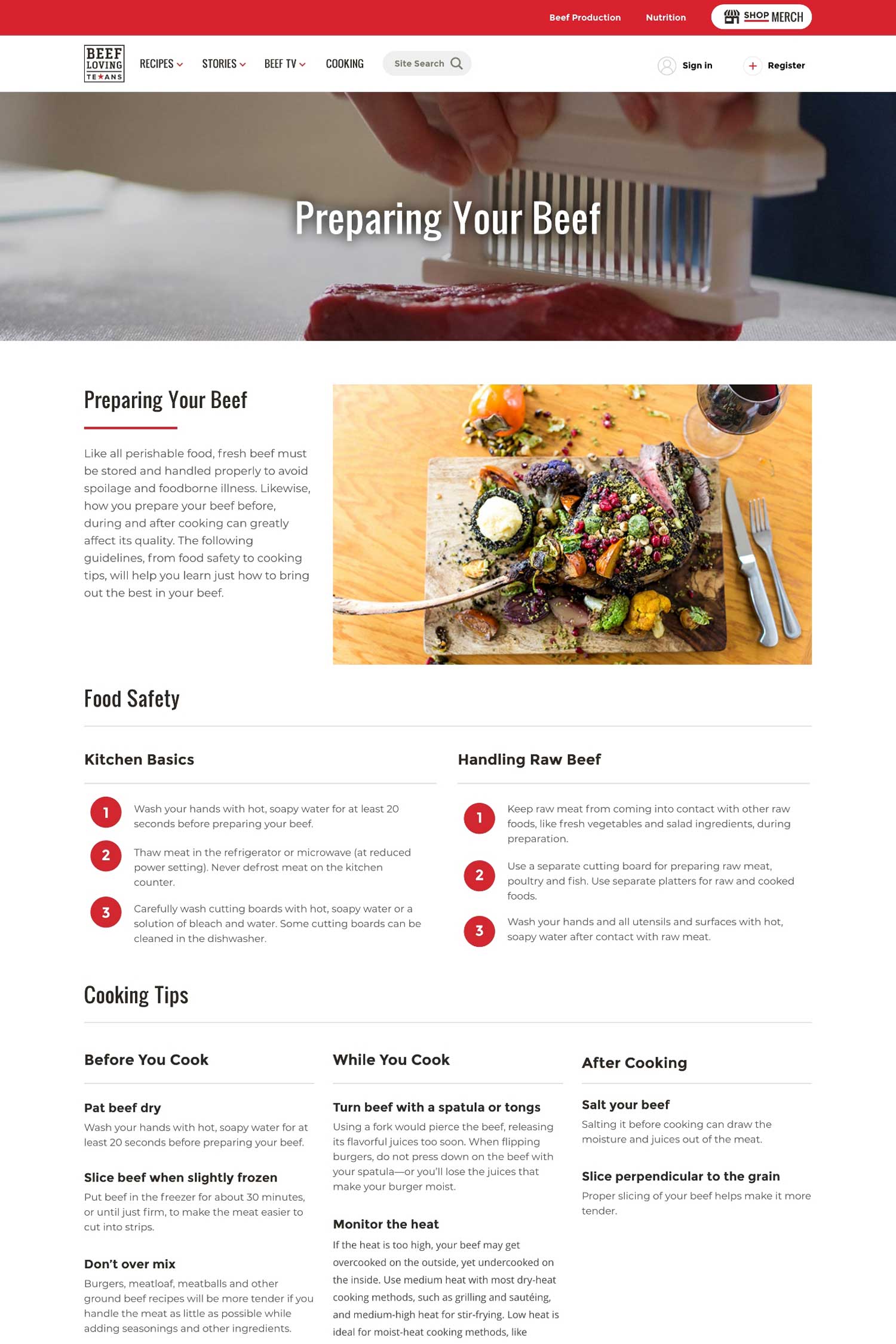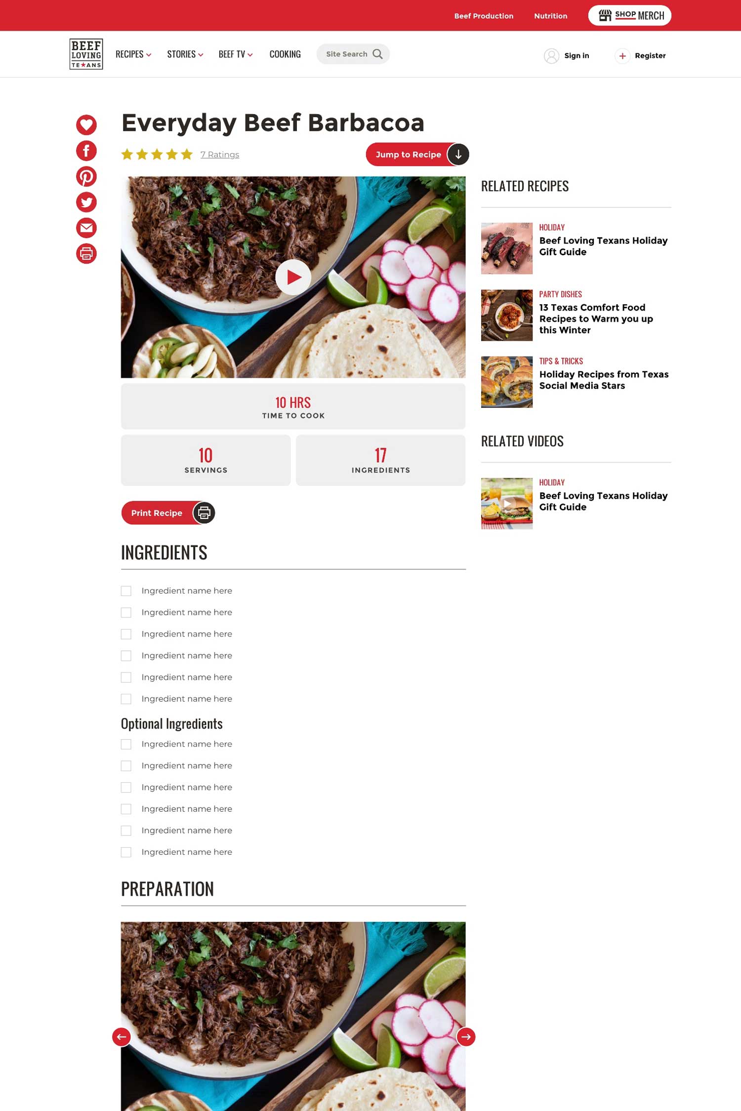 While the Beef Loving Texans website had strong branding and engaging content, users struggled to find recipes due to navigation issues and a cluttered layout. The challenge was to enhance the site’s usability, making it effortless for visitors to explore and access recipes while maintaining the engaging brand identity.